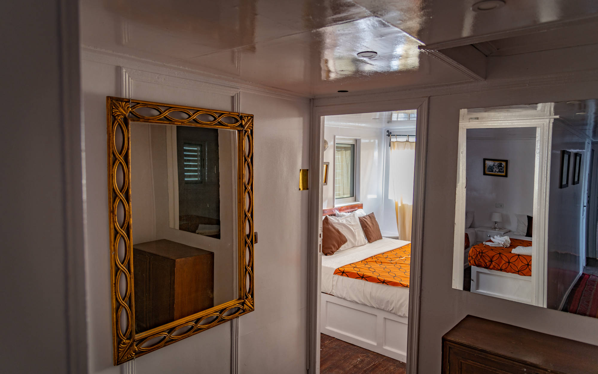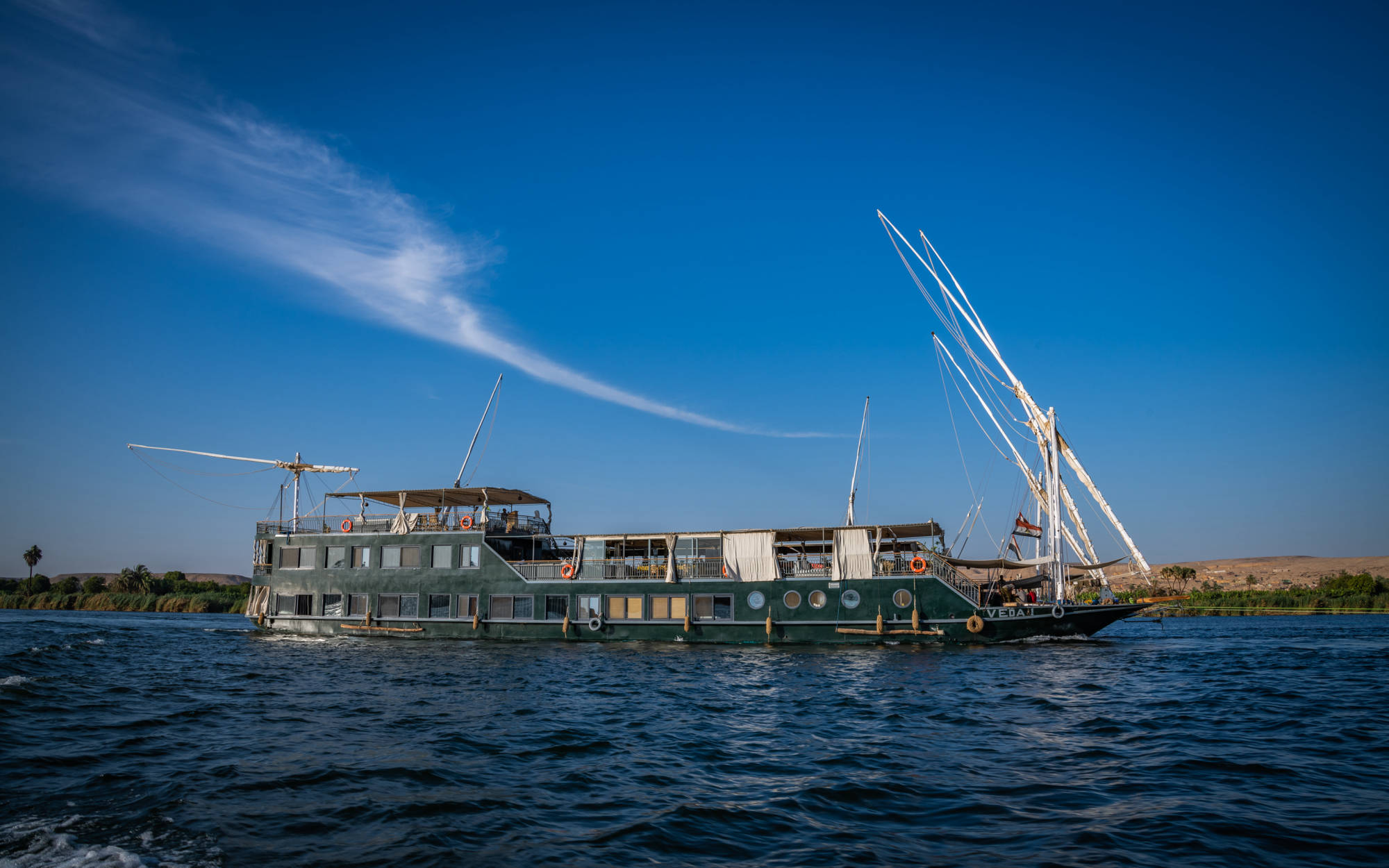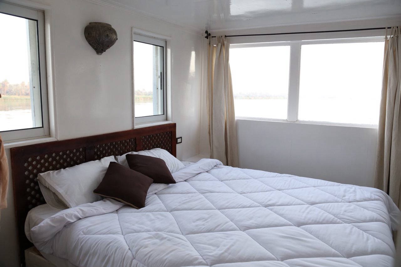 A cozy 18-meter dahabiya offering a peaceful floating home for smaller groups of people.
